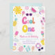 Este convite de aniversário para meninas apresenta ilustrações coloridas adoráveis de verão com sotaques falsos de folha de ouro.