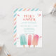 Celebre o verão com este convite fofo e colorido com picolés cor-de-rosa.