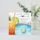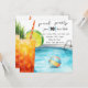 Uma grande bebida tropical com limão e abacaxi é a vanguarda deste convite de festas piscina que você pode personalizar. O conjunto de piscinas ao fundo tem uma bola de praia colorida de arco-íris flutuando na piscina. Adicione mais informações aos seus convidados no verso deste cartão. O inverso também tem a mesma ilustração. Personalize isto para as suas festas de piscina, reuniões de primavera e celebrações de aniversário. Projetado por mw1designsart.