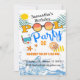 Óculos solares e água salgada dão a esta convite de festas de aniversário divertida uma sensação tropical.