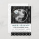 Convide amigos e família para a doce festa de aniversário de uma garota especial, com este convite de festas de bolinhas preto e branco! Carregue sua própria fotografia de aniversariante favorita e sua posição/tamanho, conforme necessário, para preencher a área do círculo. bolinhas negras e brancas doces e espinhosas são acentuadas com uma bonito faixa e arco de aparência brilhante em preto e prateado, e um círculo com anel duplo com texto verde preto e preto e branco anunciando um doce 16. Quatro áreas de texto personalizáveis para suas informações de participante.