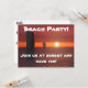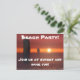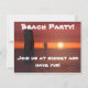 Festa de Praia! Junte-se a nós ao pôr do sol e divirta-se a noite toda! Um convite excelente para uma festa de praia quente de verão. Coquetéis, pôr do sol, pessoas felizes.