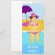 Garota de biquíni cor-de-rosa bebendo uma bebida no feriado de praia