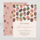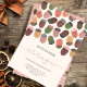 Belos modelos de convite de festa de primeiro aniversário com tema de outono prontos para você personalizar! Caindo da borda superior deste design, há bolotas pintadas à mão em belos tons de rosa, marrom e verde decorados com um design decorativo simples. Sinta-se à vontade para entrar em contato comigo com qualquer dúvida relacionada ao design!. Arte original de Caroline Bonne Müller