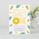 Celebre o seu primeiro aniversário com estes adoráveis convites de aniversário de abacaxi! Os convites contêm a frase "Sweet One" com um anel de abacaxi e uma inscrição amarela manuscrita. Ilustrações bonitas de abacaxi, fatias de abacaxi e folhas tropicais verdes cercam seus detalhes de festas. A parte de trás dos convites tropicais de primeiro aniversário exibe um padrão de abacaxi correspondente. Os convites para festas de aniversário de abacaxi são perfeitos para festas de verão ou de primeiros aniversarios de temas tropicais!