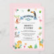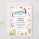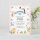 Animais Selvagens Safari Rapariga primeiro aniversario Selvagem apresentando animais tropicais, uma ave exótica e outros elementos festivos bonitinhos. Envie os convites e comemore o primeiro aniversário do selvagem com amigos e familiares. Planeje um partido que todos se lembrarão por anos começando com esta primeira festa de aniversário editável