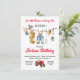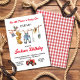 Fazenda de aquarelas com roupa de Festa de aniversário com trator, animais de exploração, fardos de feno, jardineiras, porcos de animais recheados, celeiros e animais de exploração. Excelente para zoológico, churrasco exterior, festa de aniversário neutra em termos de gênero. Todos os textos podem ser alterados. Para fazer mais mudanças, vá para Personalizar este modelo. Na parte inferior você verá "Quer personalizar este design ainda mais? Clique em EDIT usando a ferramenta Design. A partir daí você pode mudar algumas fontes e algumas cores, mover coisas ou excluir o que você precisa. Um pequeno conteúdo de geração de meia-jornada combinado com elementos desenhados à mão.