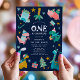 Celebrar o primeiro aniversario do seu filho com os nossos convites para a primeira festa de aniversário de Natal do Dino de inverno! Esta bela design de aniversário apresenta um quadro de dinossauros coloridos, vestidos de chapéus e lenços com presentes e detalhes de sua festa personalizada na tipografia moderna contra um fundo azul marinho. Simplesmente personalize os convites de festa de aniversário adicionando o nome do seu filho e os detalhes da festa.