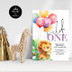Festa de Cobra de Leão Selvagem. Disponível digitalmente e impresso. Bons animais da selva para a sua primeira comemoração de aniversário! Wild está em um script de na moda fixo e o resto do texto pode ser facilmente personalizado para seus próprios detalhes.