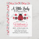 Uma moça está virando uma! Um convite de aniversário vermelho e preto de joaninha. O verso do convite é decorado com um bonito padrão floral vermelho, preto e branco. Personalize-o para a festa de primeiro aniversario de suas meninas. Projetado para você pelo Blackberry Boulevard.