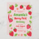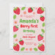Capture a doçura de um marco com este charmoso design de festas de morango, apresentando um tema delicioso de morango em tons vermelhos e verdes vibrantes com espaço para uma foto apreciada. Perfeito para a celebração de uma rua infantil, esta peça personalizável traz uma vibração fresca e caprichosa ao partido. Com seu adorável estilo inspirado na fruta, é ideal para uma reunião memorável. Inclui espaço para os detalhes do evento e informações de RSVP. Personalize-o para criar um tesouro para o seu bebê e convidados!