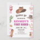 Este é um Convite de festas de primeiro aniversario do primeiro rodeio ocidental da Cowgirl!
