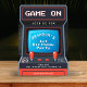 Convite de festas do primeiro aniversario da máquina de jogos Arcade. Personalize-o com os detalhes do evento.