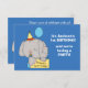 Este é um Convite de festas bonito que apresenta um elefante cinza segurando um letreiro amarelo que diz Feliz Aniversário! O elefante segura um balão azul e veste um chapéu de festa amarelo. Seu texto personalizado está branco ao lado, e tudo é colocado sobre um fundo azul brilhante. A parte de trás do convite tem outro elefante com presentes de aniversário no porta-malas. Há muito espaço para as informações da sua festa. *Obrigados para a Clipart Real Deal para o cliente usado para criar este design.