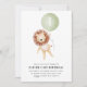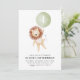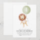Um belo leão e um convite de primeiro aniversario de um rapaz de balões verdes - O tema perfeito para a sua primeira festa de aniversário. O número no balão pode ser editado para se adequar a um segundo aniversário ou qualquer idade!