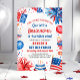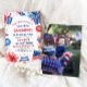 Celebre o seu primeiro aniversário com o nosso Pequeno Físico de 4 de julho Convite de festas! Este adorável convite apresenta um tema festivo vermelho, branco e azul, perfeito para uma celebração patriótica de verão. Personalize-o com a foto do seu filho e todos os detalhes do partido para tornar esta etapa extra especial. Convide amigos e família para se juntarem à diversão e às festividades enquanto comemora o primeiro ano do seu pirata-fogos com fogos de artifício e alegria!