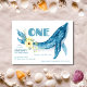 Elegante, convites de festas de aniversários temáticos do oceano com uma baleia pintada de cor d'água, enfeitada com flores amarelas e folhas verdes sobre fundo branco. Personalize os convites de festas de aniversários de baleias bonitinhas adicionando o nome da aniversariante ou do menino e os detalhes da festa.