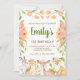 Celebre seu dia especial com este charmoso convite para primeiros aniversarios de matas. Apresentando doces animais de aquarela vestindo coroas florais, delicados sotaques florais e cores pastéis macios, este design é perfeito para a primeira festa de aniversário de uma menina. Personalize com o nome do seu filho, os detalhes do partido e as informações de RSVP. Ideal para comemorações de primavera, verão ou jardim.
