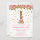 Roses Rosa, convite de festas Floral de primeiro aniversario para uma menina de 1 ano com escrevendo moderno de escrita e brilho dourado.