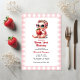 Bem-vindos a uma comemoração especial de "morango"! Este personalizável Convite Berry First Birthday apresenta um bebê adorável segurando um morango de ameixa, emoldurado por uma borda cor-de-rosa e anões de bagas espalhados nas costas. Impresso no estoque de papelão de altura premium, a placa 5″×7″ inclui texto editável para nome, data, hora e local. Perfeito para uma festa rústica, fresca e fazenda, com verduras saudáveis, laranjas quentes e amarelos leves — combina-a com sacos de tota, pombos e jarras de pedras para um charme coeso no interior.