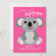 Estes convites de festas de aniversários bonitinhos e coloridos de urso coala são perfeitos para a celebração de um primeiro aniversario infantil! Personalize o texto para torná-lo seu. O olhar e o sentimento modernos é a forma perfeita de celebrar o seu pequeno que ama animais australianos e ursos koala no seu primeiro aniversário! Perfeito para garotas de rosa!