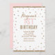 Convites de festas de primeiro aniversario de Pontos de Confetti Rosa e Dourada.