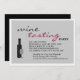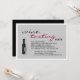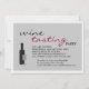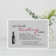 O Convite de festas de Provando apresenta uma garrafa de vinho e uma taça contra uma cinza pálida. © Manhã 6