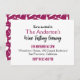 convite de festas na moda burgundy e provando de vinho branco. O texto totalmente personalizável na frente permite adicionar sua própria mensagem, nomes, endereço e local. O dorso é moldado com um copo de vinho e design de saca-rolhas