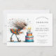 Um único convite de festas de 4 anos, característico, com uma garota esquisita e ilustrada soprando as velas em seu bolo. Disponível em impressão, como download digital ou ambos.