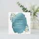 Bonita, elegante e moderna para a sua festa Quinceañera. Azul-aquarela com folhagem dourada em bordas esquerda/direita e confete brilhante esparramado nas bordas. Blash azul de aquarela sobre fundo. Modelos criaram por você.