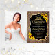 Quinceanera convite de festas com sua foto. Apresenta padrão de madeira rústico, fonte de script, girassóis, tiara e confetti. Design russo com ouro brilhante falso. Perfeito para uma celebração elegante.