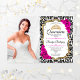 Quinceanera convite de festas com sua foto. Possui cor damasco branca preta, fonte de script, rosas rosa fuchsia, tiara e confetti. Design branco-preto clássico, cor-de-rosa, com ouro falso brilhante. Perfeito para uma celebração elegante.