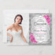 Quinceanera convite de festas com sua foto. Apresenta faixas, fontes de script, rosas cor-de-rosa, tiara e confetti. Design clássico com folha de prata brilhante falso. Perfeito para uma celebração elegante.