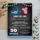 Encontrem seus hóspedes com esse tema de pesca fofo... o gênero revela o convite de trazer peixes azuis com roupas de bebê cor-de-rosa e isca com tipografia moderna... contra um fundo de quadro. Basta adicionar os detalhes do seu evento neste modelo fácil de usar para torná-lo um convite de tipo único.