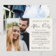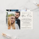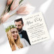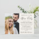 Anúncio de casamento íntimo / pequeno casamento com convite de recepção de casamento em creme elegante e sofisticado. A frente apresenta sua foto e "Festa para Sempre Felizes" em uma mistura de tipografia simples e uma fonte moderna. Personalize seu anúncio e convite, e adicione seus nomes em uma fonte com aparência de assinatura. No verso, adicione outra foto, seus primeiros nomes e data do casamento ou evento.