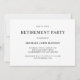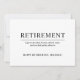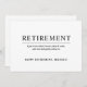 Simples Convite de festas de aposentadoria com uma citação sobre fazer o que você quiser quando estiver aposentado. O design pode ser personalizado com sua própria mensagem na frente. Todo o texto está preto sobre um fundo branco e pode ser alterado para qualquer cor desejada clicando no botão "personalizar".