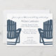 Marinho azul, cadeiras de praia de Adirondack no estilo moderno de um convite de festas de aposentadoria de texto.