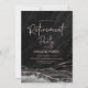Convite de festas de aposentadoria rosa de ouro preto. Elegante design moderno com aquarela agate marble geode background, faux glitter rosa gold e typografia script font. Trendy convida o cartão perfeito para uma festa de aposentadoria das mulheres na moda. Impressos convites Zazzle ou modelo de impressão digital instantânea para download.