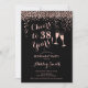 Convite de festas de aposentadoria elegante para homens ou mulheres. Convide cartão em ouro rosa brilhante preto e falso. Apresenta a fonte do script de tipografia clássico, óculos de champanhe e confetti. Saúde para a aposentadoria! Personalize com seus próprios detalhes. Pode ser personalizado para mostrar a qualquer ano. Impressos convites Zazzle ou download instantâneo de modelo digital. Perfeito para uma comemoração de na moda.