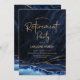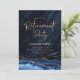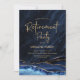 Marinho azul e convite de festas de aposentadoria de agate dourado. Elegante design moderno com cor azul-real de água agate marble geode fundo, fonte falsa de ouro brilhante e script de tipografia. Trendy convida o cartão perfeito para uma festa de aposentadoria das mulheres na moda. Impressos convites Zazzle ou modelo de impressão digital instantânea para download.