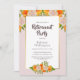 Um convite de festas de aposentadoria floral cor-de-rosa e laranja.