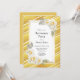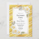 Um convite de festas de reforma floral com listras de ouro diagnosticalmente listradas.