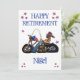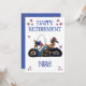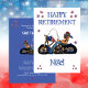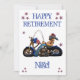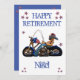 Convite de festas de aposentadoria engraçado para a aposentada. Celebre a aposentadoria de um familiar, amigo ou colega de trabalho com esse Convite de festas de aposentadoria engraçado projetado com um velho motociclista. O texto da primeira página inclui: Partido da Reforma Feliz e o primeiro nome em azul sobre um fundo branco com estrelas coloridas. O texto do verso inclui: nome, data, hora, local, endereço e nota RSVP em um plano de fundo azul. Para personalizar, basta inserir seus detalhes em nosso modelo fácil usando nosso guia passo a passo e ferramentas na tela. É rápido e fácil de fazer. Aproveite!