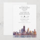 Este convite de festa de aposentadoria elegante, apresentando uma silhueta de Chicago em aquarela, pode ser personalizado com todas as informações da sua celebração especial. Projetado por Thisisnotme©