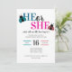 Celebre seu pequeno amor com este adorável convite de revelação de gênero com tema de primavera! Com ilustrações encantadoras de joaninhas em tons doces de rosa e azul, este design traz um clima alegre e inspirado em jardins, perfeito para dar as boas-vindas a amigos e familiares para compartilhar sua emocionante surpresa. A tipografia divertida "He or She" combina perfeitamente com os gráficos caprichosos de joaninhas, criando um estilo moderno e doce que parece caloroso, convidativo e cheio de charme sazonal.