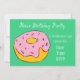 Um design bonitinho moderno adequado para uma festa de aniversário de menina ou adolescente de um tema de rosquinha rosa fofo. Este design é caprichoso, fofo e pode ser totalmente personalizado para incluir seus próprios detalhes pessoais.