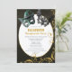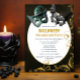 Convide seus convidados para uma festa de mascarada de Halloween assombrada com este convite maravilhoso. Apresentando máscaras assustadoras, um enfumaçado verde / fundo bokeh e espirais douradas. Este convite dá o tom perfeito para um evento divertido e misterioso.