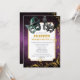 Convide seus convidados para uma glamourosa festa de mascarada de Halloween com este convite maravilhoso. Apresentando máscaras assustadoras, um fundo de enfumaçado roxo e espirais de brilho dourado, ele define o tom perfeito para um evento divertido e misterioso.