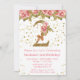 Roses Rosa, convite de festas Floral de segundo aniversário para uma menina de 2 anos com escrevendo moderno de escrita e brilho dourado.
