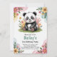 Este design de convite para o aniversário de panda floral inclui uma bonito borda de cor d'água floral. Há um urso panda fofo no centro que está sentado num pedaço de erva. Por baixo, há um espaço para adicionar suas informações em uma fonte decorativa e fácil de ler. Este convite diz "segundo aniversário", mas você pode facilmente mudar para qualquer ano de aniversário. Esses convites divertidos, porém bonito, para festas de aniversario de meninas também incluem escrevendo rosa.